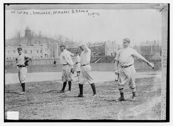 Pitchers Harry McIntire, Cyrus "Cy" Dahlgren, Joe McManus, Mordecai "3-Finger" Brown, Cincinnati NL (baseball)
