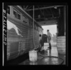 Pittsburgh, Pennsylvania. Washing a bus at the Greyhound garage