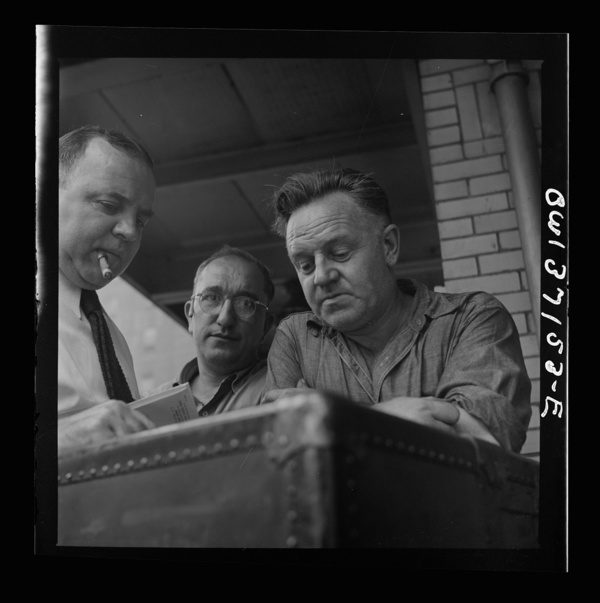 Pittsburgh, Pennsylvania. Baggage agents at the Greyhound bus terminal