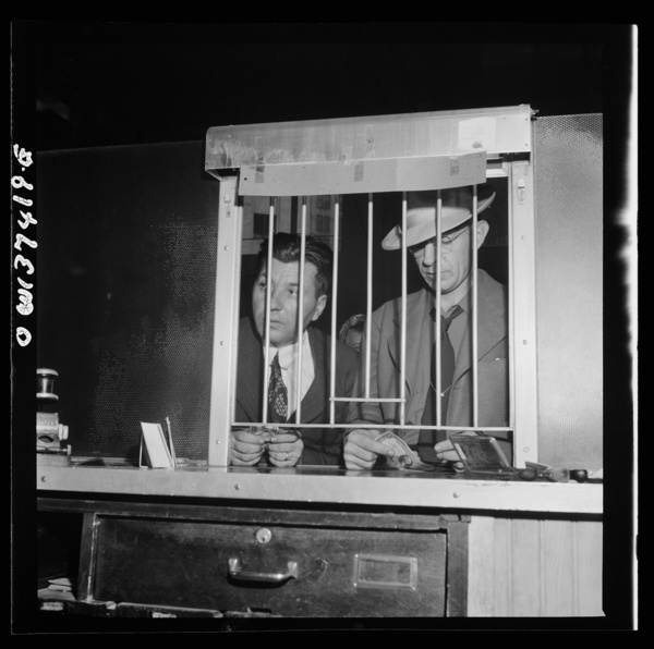 Pittsburgh, Pennsylvania. People buying tickets at the Greyhound bus terminal