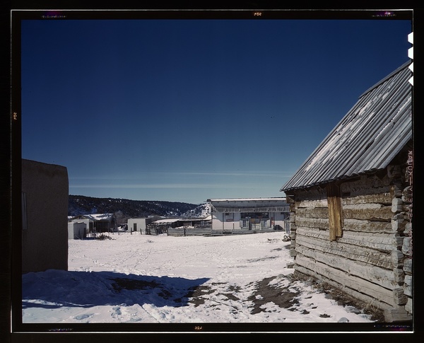 A Santo bulto and a painting of the Dolorosa in the church, Trampas, New Mexico