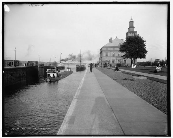 Entering and leaving Poe Lock, Sault Ste. Marie, Mich.