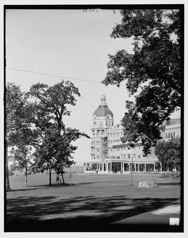 Poland Spring House, hotel vista through the trees, Poland Spring, Me.
