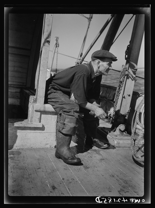 Portrait of a fisherman on board a fishing vessel out from Gloucester, Massachusetts
