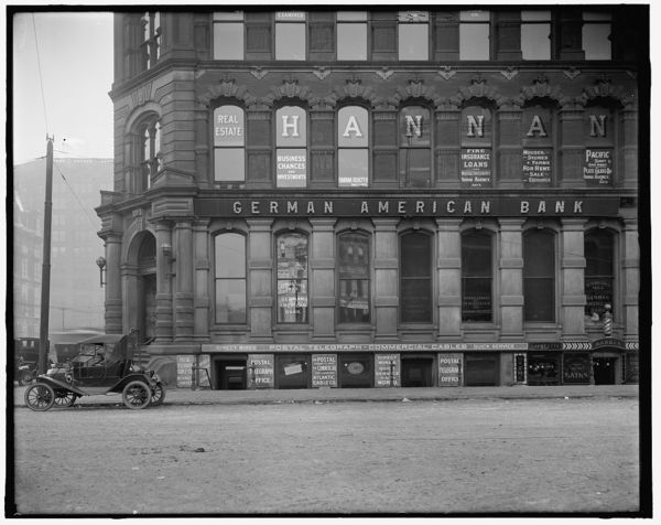 Postal Telegraph Cable Co. on ground floor below German American Bank, possibly Detroit, Michigan