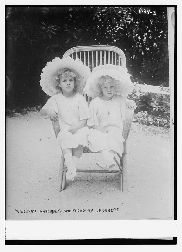 Princess Marguerite and Theodora of Greece, seated together in chair