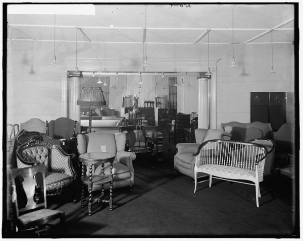 Pringle Furniture Co. showroom with end tables and chairs, Detroit, Mich.