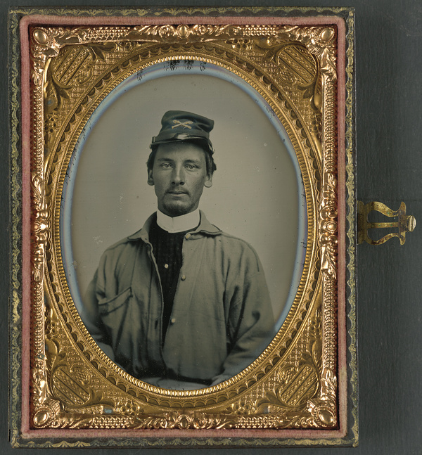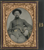 Unidentified soldier in Confederate uniform and derby hat with sword