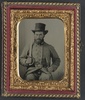 Private Luther Hart Clapp of Company C, 37th Virginia Infantry Regiment, in uniform and two-piece Virginia state seal buckle with Boyle and Gamble sword