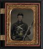 Unidentified soldier in Union uniform with three Remington revolvers, two Bowie knives, and a Springfield rifle musket