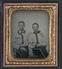 Two unidentified soldiers in Confederate battle shirts