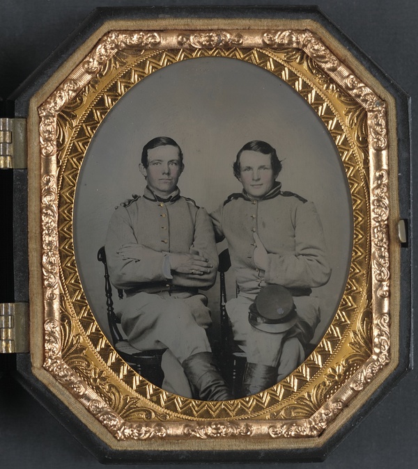 Private Reggie T. Wingfield and Private Hamden T. Flay in Confederate uniforms