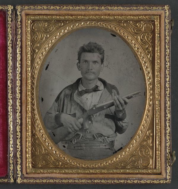 Private Stephen Pollard of Co. B and Co. L, 7th Confederate States Cavalry Battalion, in uniform with 1855 Springfield pistol carbine and pistols