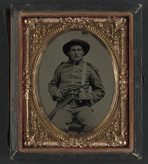 Private William Anthony Holland of Co. K, 10th Virginia Cavalry Regiment with Bowie knife and Colt Army Model 1860 revolver