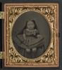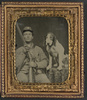 Private Hiram L. Barrett of Co. K, 7th Connecticut Infantry Regiment in uniform with bayoneted musket, and nine-month-old girl, Marrie