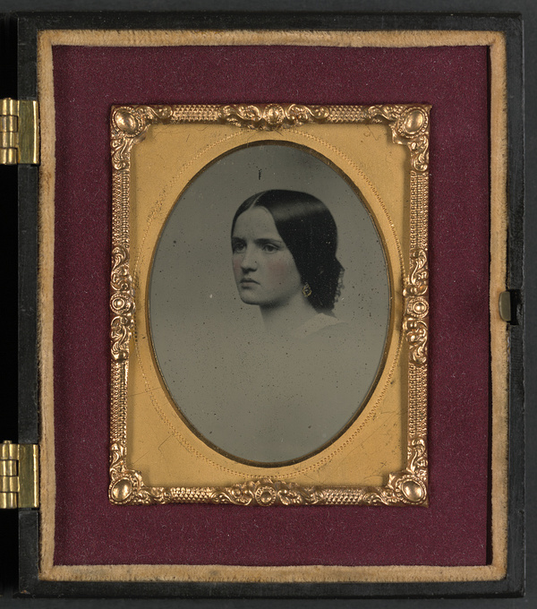 Privates John James Audubon Powell and Van Franklin Garrett of Co. B, VMI Virginia Infantry Battalion, in uniforms, and unidentified woman