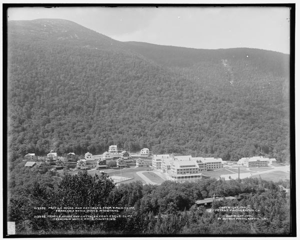 Profile House and cottages from Eagle Cliff, Franconia Notch, White Mountains