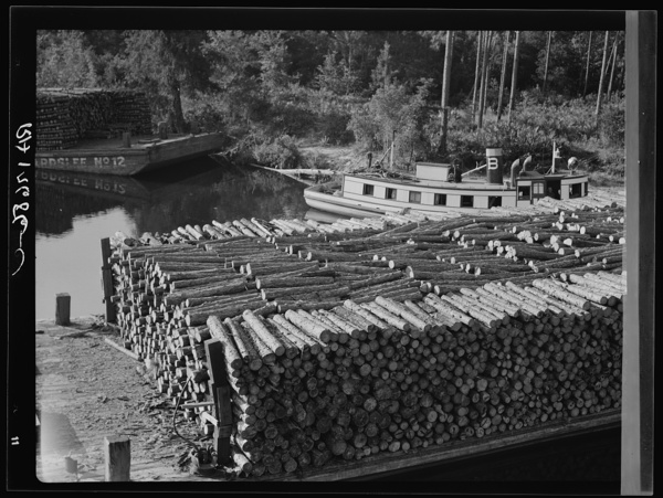 Pulp wood going down the River Styx to Mobile by inland waterway near Robertsdale, Alabama
