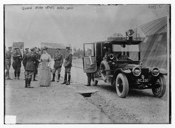 Queen Mary visits aero. shed