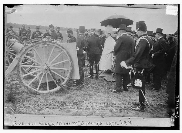Queen of Holland inspects French Artillery