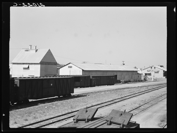 Railroad yard behind potato shed from which Klamath potatoes are shipped across the country. Tulelake, Siskiyou County, California