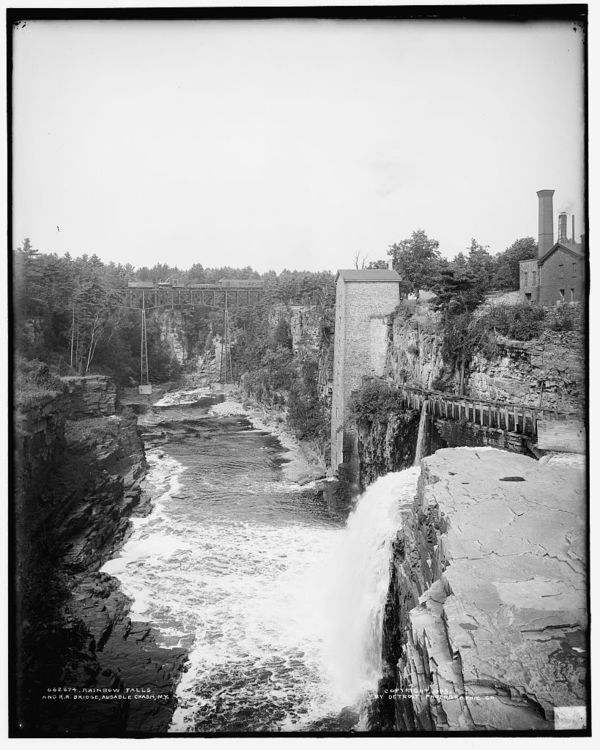 Rainbow Falls and R.R. bridge, Ausable Chasm, N.Y.