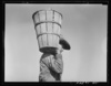 Pea picker carrying a hamper of peas to the weighmaster. Nipomo, California