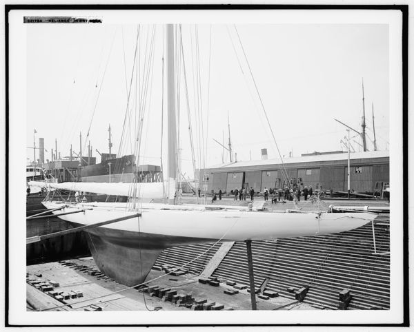 Reliance in dry dock at Erie Basin, Aug. 17, 1903