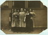 Group of girls working in Cass & Daley Shoe Co, Salem. Saw a number of children from 14 to 16 (apparently) and two or three probably under 14. Smallest girl in photo is Odella Delisle (2612 - 2613). Location: Salem, Massachusetts.