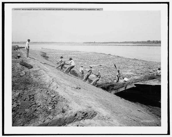 Revetment work on the Missouri River, the mat, Cambridge, Mo.