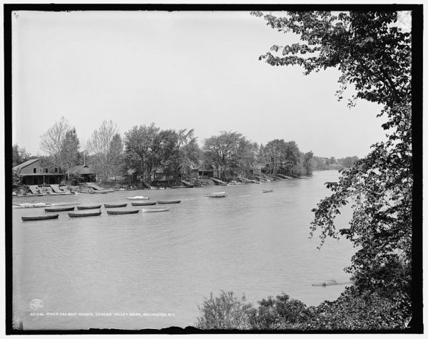 River and boat houses, Genesee Valley Park, Rochester, N.Y.