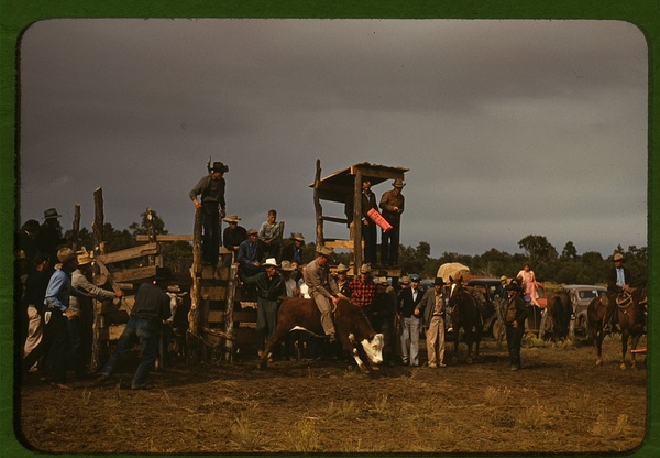 Group of homesteaders in front of the bean house which was used for exhibit hall at the Pie Town, New Mexico Fair