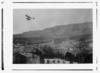 Breguet biplane, type 1910, flying over a town, possibly in Morocco