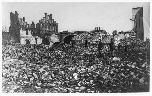 Ruins at Richmond, Va., canal in foreground, ruins in background