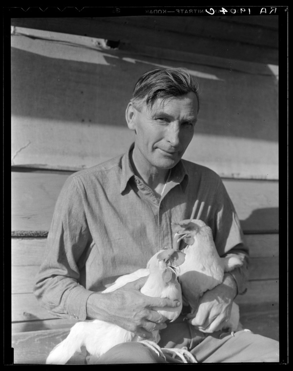 Rural rehabilitation client. Chicken farmer making good on rural resettlement loan. He sells one case of eggs a day. Worked on a state emergency relief administration job previous to loan. San Fernando Valley, California
