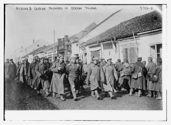 Russian & Servian i.e., Serbian prisoners in Servian village