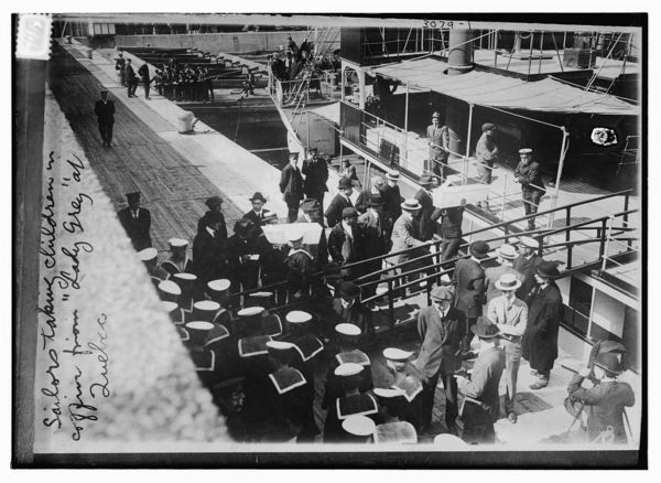 Sailors taking children in coffins from LADY GREY at Quebec