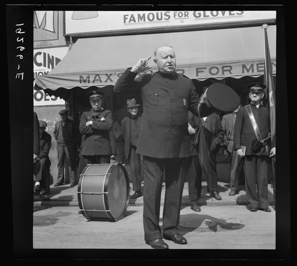 Salvation Army, San Francisco, California. "Power of the lord" preaching by a "soldier" saved twelve years before, with the army ever since