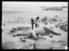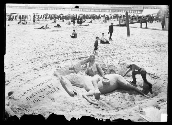 Sand sculpture and artist, beach, Atlantic City, N.J.