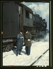 Atchison, Topeka, and Santa Fe railroad conductor George E. Burton and engineer J.W. Edwards comparing time before pulling out of Corwith railroad yard for Chillicothe, Illinois; Chicago, Ill.
