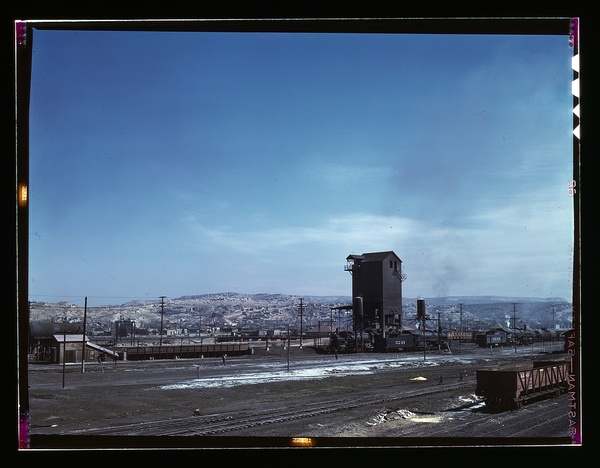 Santa Fe R.R. streamliner, the "super Chief," being serviced at the depot, Albuquerque, N.M. Servicing of these diesel streamliners takes five minutes. Santa Fe R.R. trip