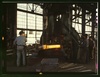 Hammering out a draw bar on the steam drop hammer in the blacksmith shop, Santa Fe R.R. shops, Albuquerque, New Mexico)