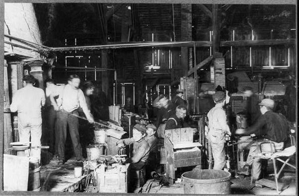 Woodbury Bottle Works. Noon hour. Woodbury, N.J. All are workers. Location: Woodbury, New Jersey.