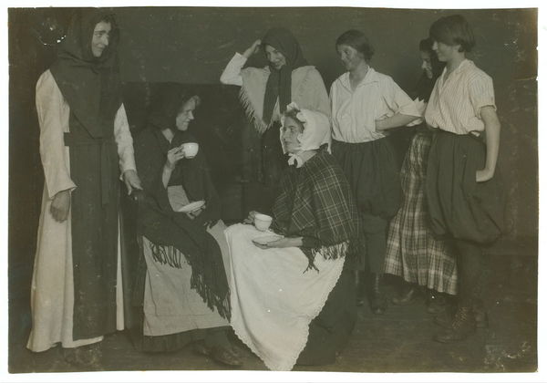 Scenes from "The Twig of Thorn" given by a club of working girls in King Philip Settlement. Most of them are weavers. All girls. Location: Fall River, Massachusetts. / Lewis W. Hine.