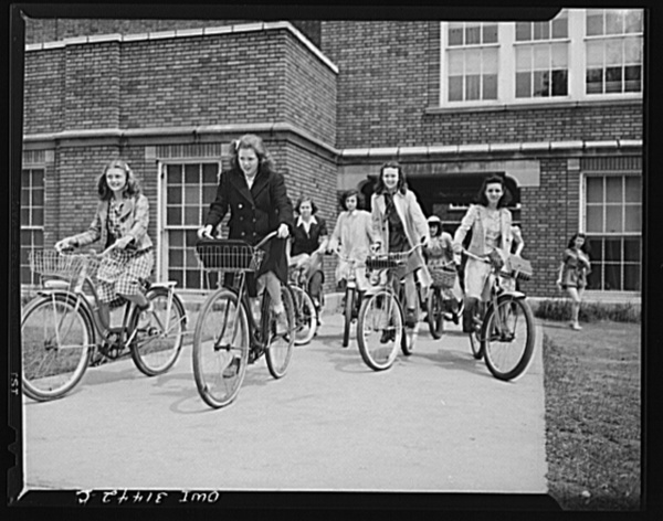 Schenectady, New York. The most popular form of transportation at the Oneida school. Boys and girls keeps their wheels in separate courts