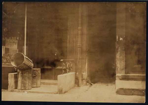(See 2850). Entrance to rear tenement where many flowers are made. 210 Sullivan Street, N.Y. Location: New York, New York (State)