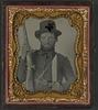 [Private John P. Alldredge of Co. A, 48th Alabama Infantry Regiment in uniform and wishbone belt ...