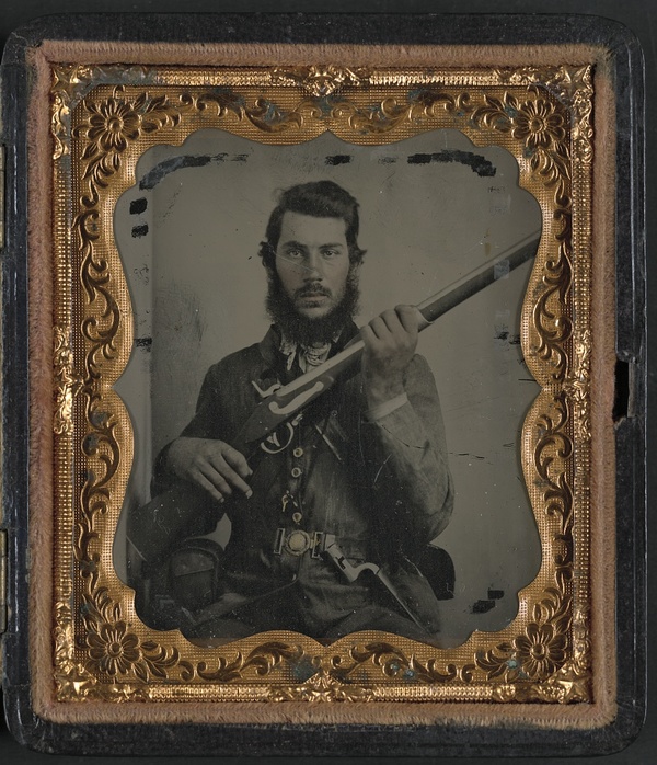 Private William Anthony Holland of Co. K, 10th Virginia Cavalry Regiment with Bowie knife and Colt Army Model 1860 revolver