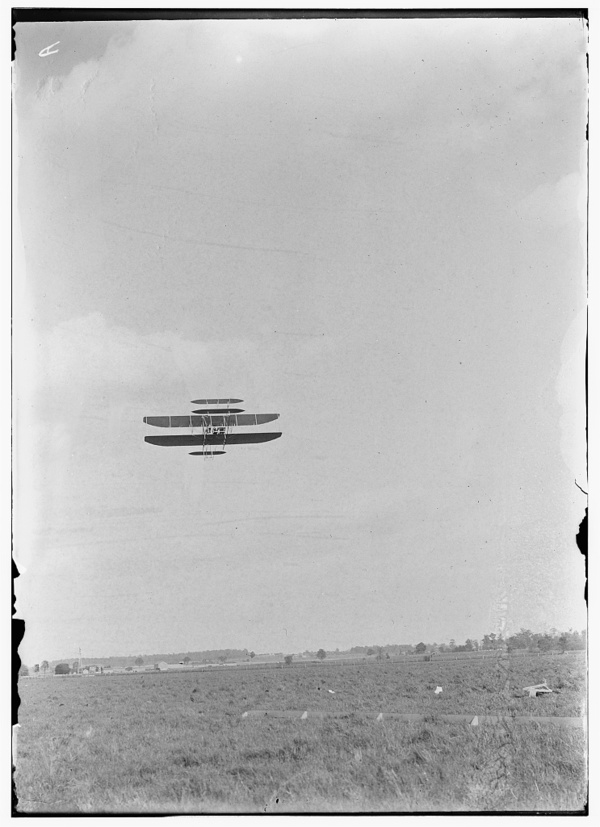 Series of flights from May through July, just after the opening of the Wright Flying School, probably Orville acting as instructor; Simms Station, Dayton, Ohio