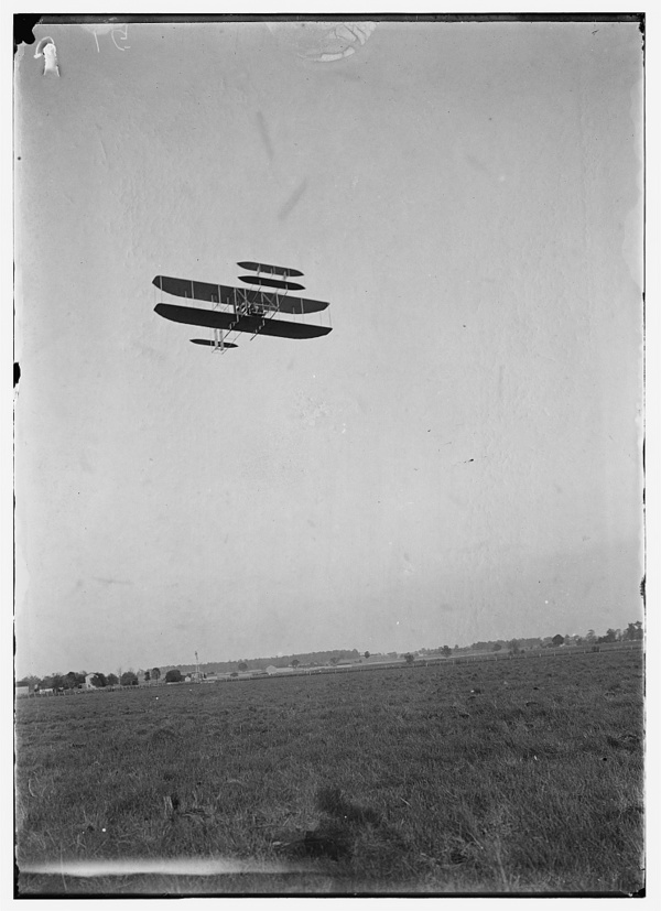 Series of flights from May through July, just after the opening of the Wright Flying School, probably Orville acting as instructor; Simms Station, Dayton, Ohio